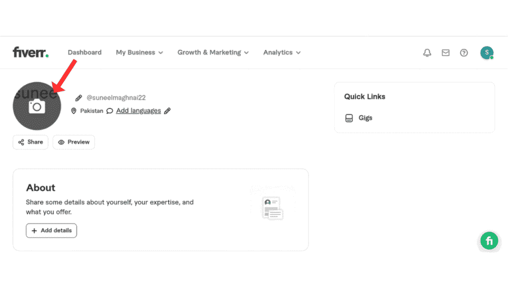 - Log in to your Fiverr account on your PC and click on the profile icon.