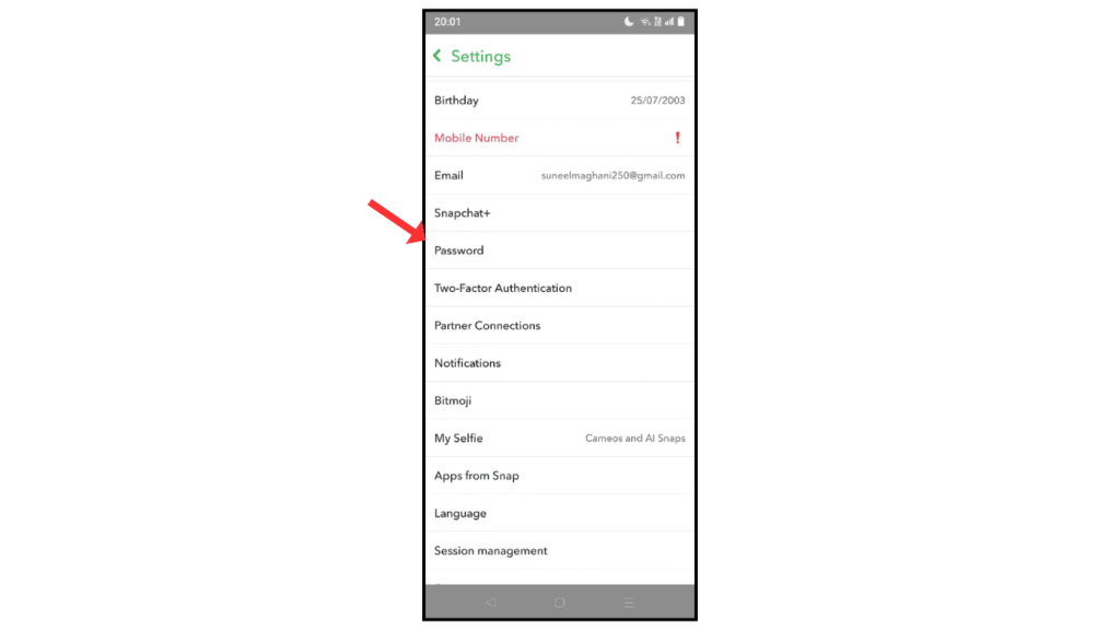 Generally, the settings for changing the password in a Snapchat account on both Android and iPhone are the same.